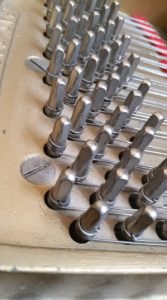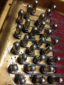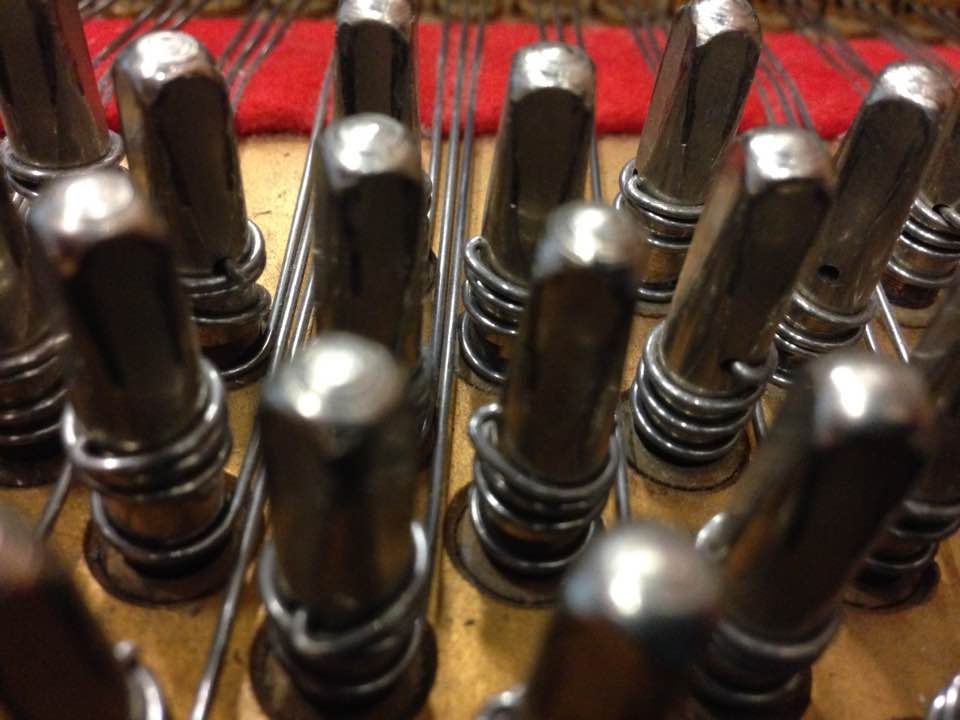 Een van mijn favoriete werken in de pianotechniek is het besnaren van een vleugel of piano. Als een instrument een nieuwe besnaring krijgt gaat dit vaak gepaard met meerdere werkzaamheden. De snaren zijn namelijk even van de piano af en daardoor kan je overal goed bij. Het gietijzeren frame kan eruit, de zangbodem kan gerepareerd of schoongemaakt worden, de kammen kunnen voorzien worden van nieuwe stiften en als het nodig is kan het stemblok vervangen worden. Dit maakt de klus kostbaar en tijdrovend. Logischerwijs gebeurt dit vaak met instrumenten waarbij dit rendabel is.